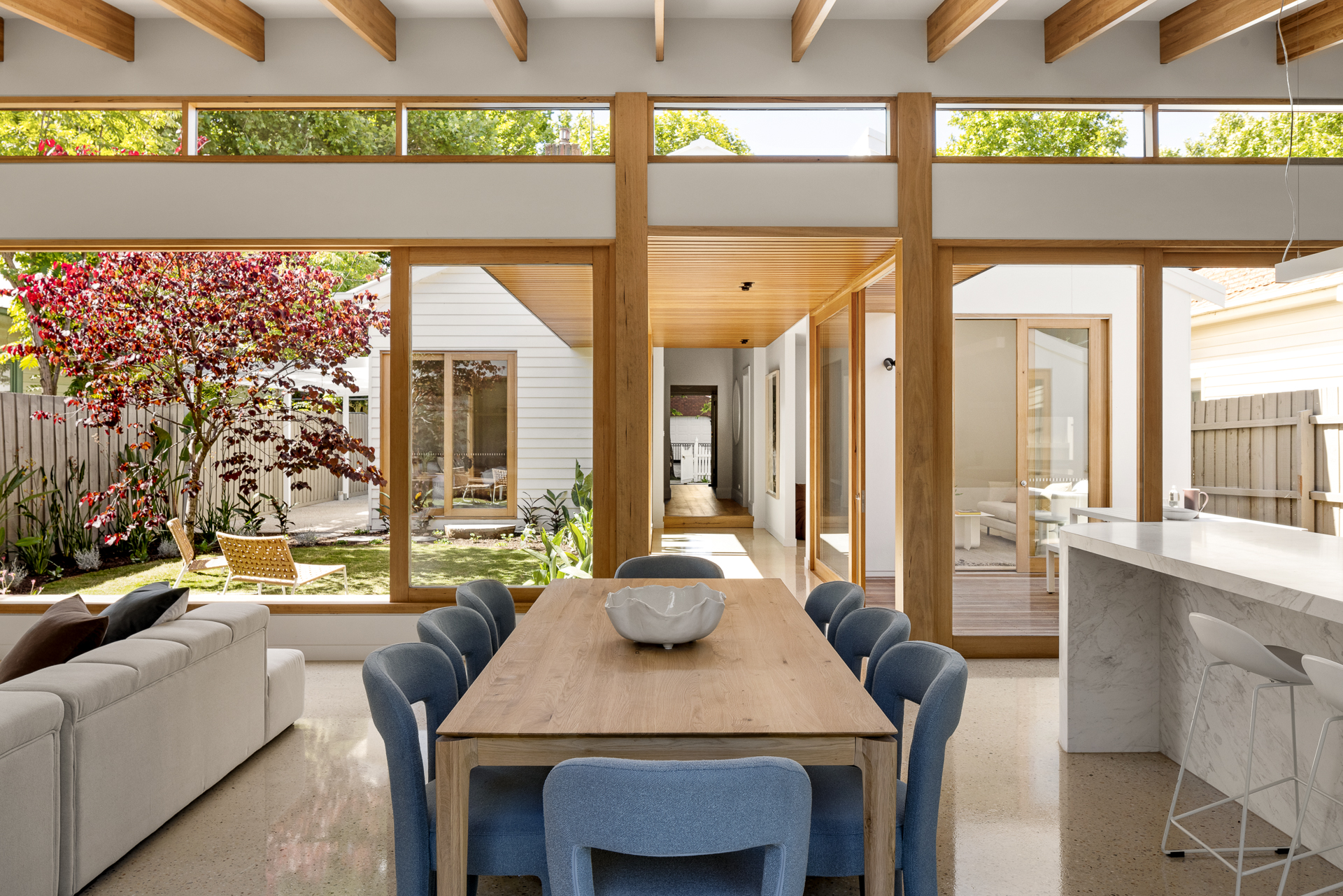 Jacqui took on the challenge of renovating a classic Californian Bungalow, turning it into a stunning contemporary home in Brunswick East. With the expertise of Bryant Alsop Architects, the renovation blended heritage charm with modern sophistication. The design embraced period details while optimising natural light and enhancing the indoor-outdoor flow.