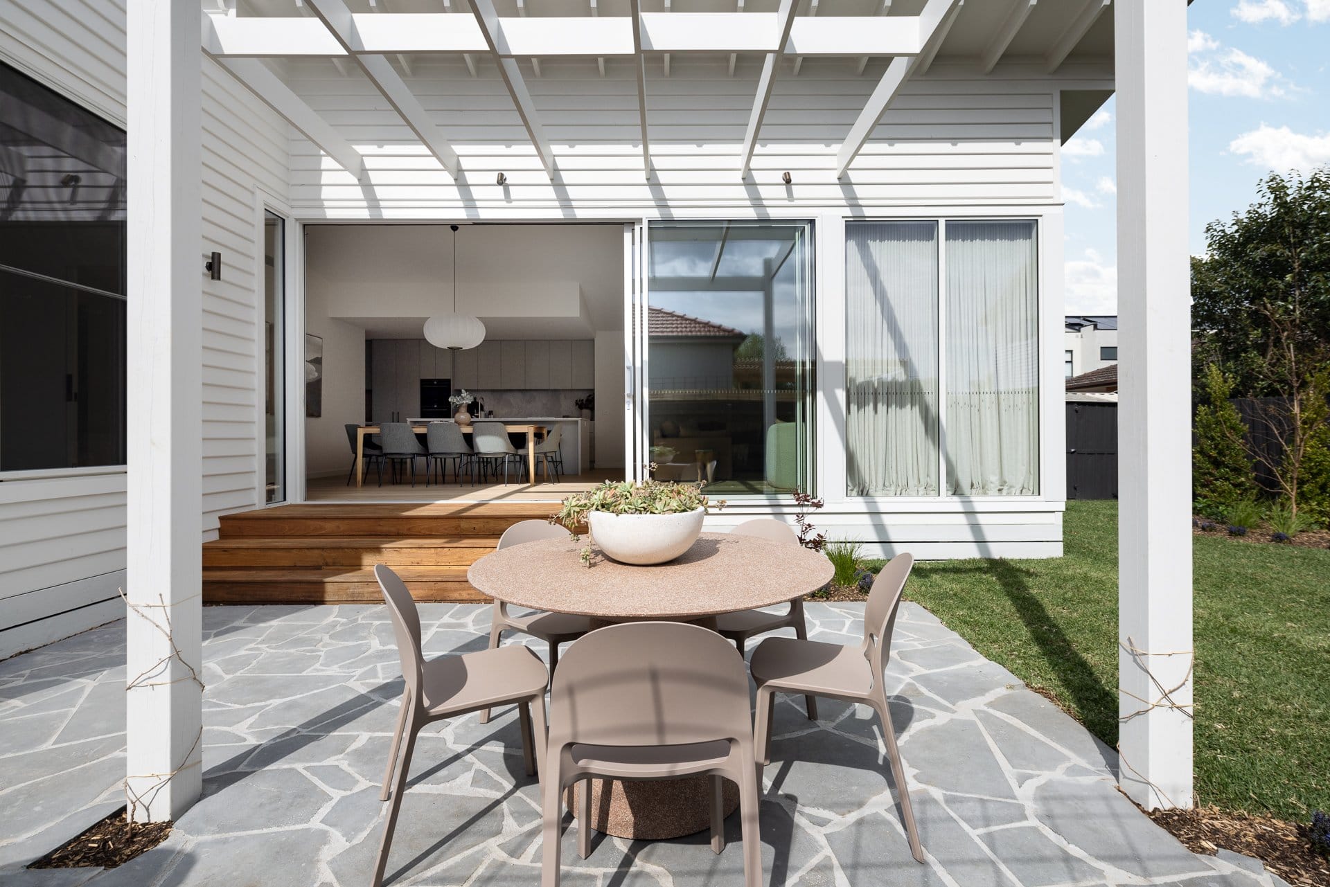 I engaged a landscape architect early, she shared the same vision that I had for the gardens and the interaction of the internal spaces/features with the outdoor spaces. I was then able to ensure that I had a cohesive palette and well-connected spaces/sight lines.