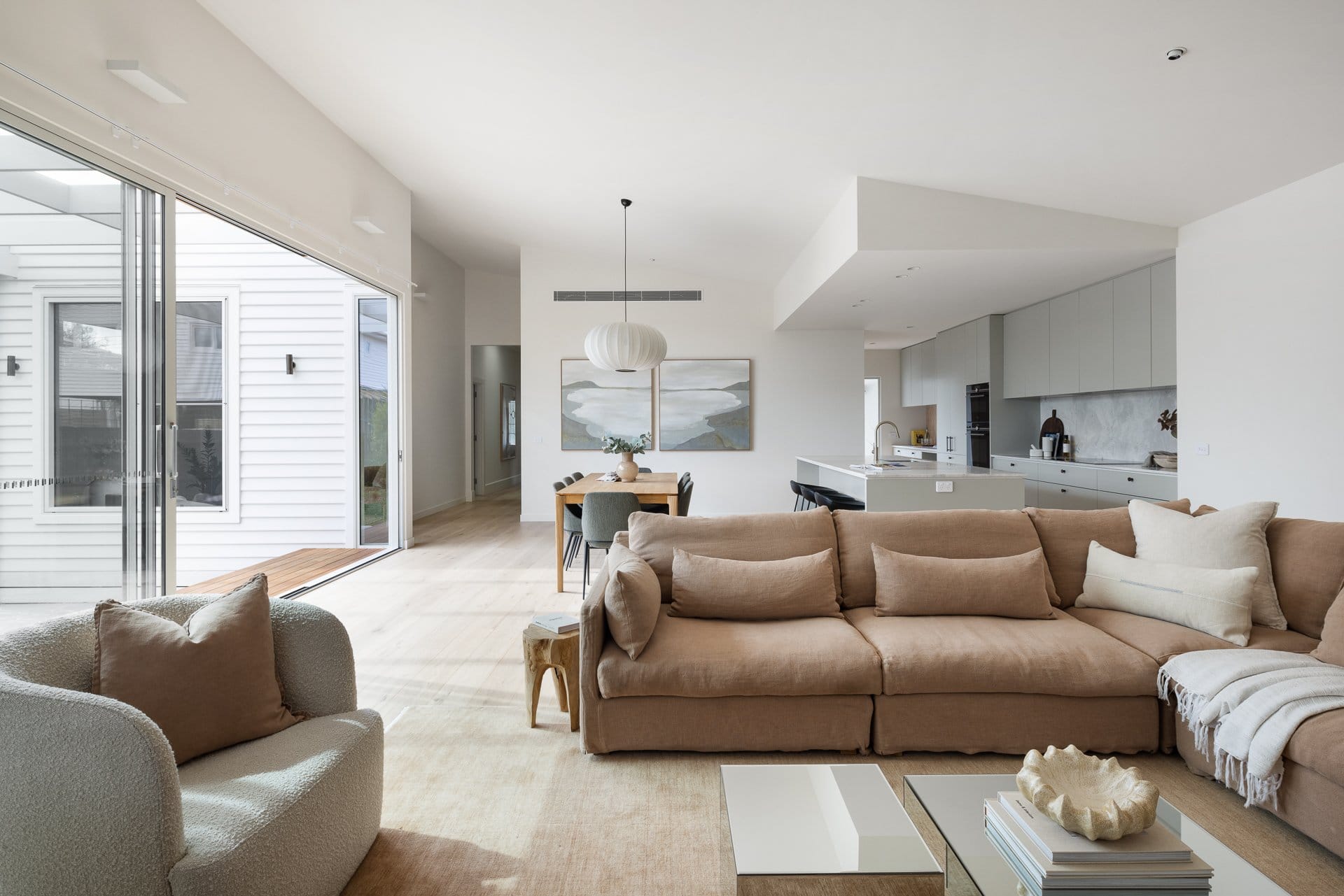 The façade was quite heavy and uninspiring but I was quickly able to find an inspo image on Instagram which enabled me to easily reimagine and transform the house into a charming home. For the extension living area, I fell in love with an image on Instagram with a raked ceiling which is a key feature of the home due to the natural light and feeling of space.