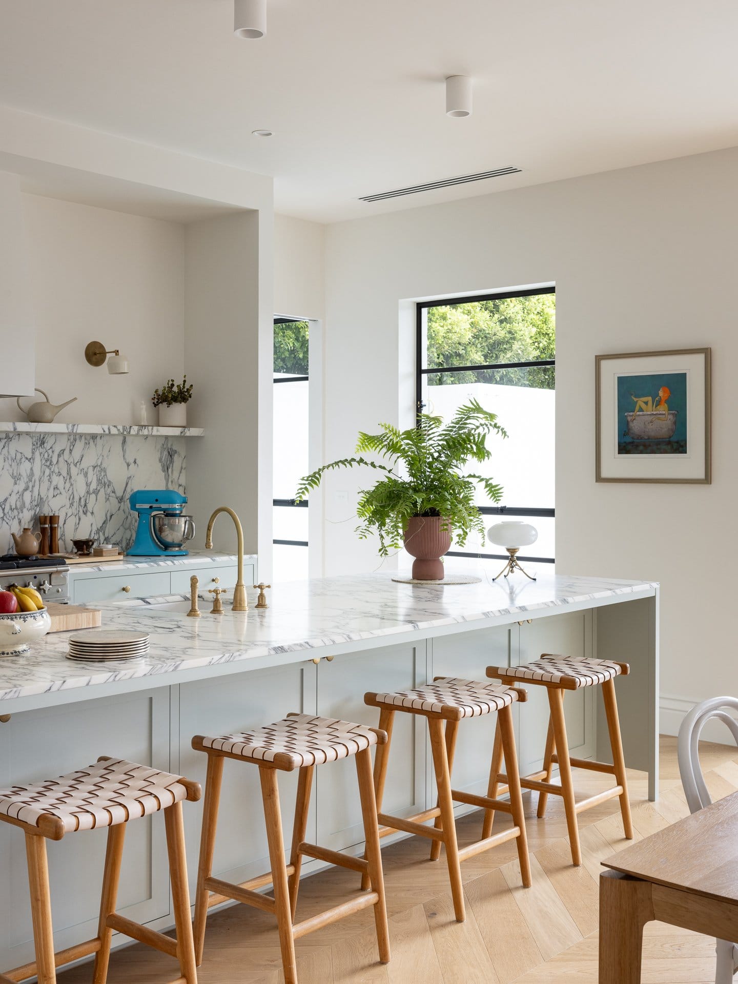 The original plan was to knock down the upstairs extension and maintain the downstairs however this quickly snowballed into a larger-scale renovation, knocking off both renovations in order to reinstate the high ceilings in the back that were lost during the previous two updates. I hadn’t renovated previously, or delved into the design world, but during the process I really discovered my passion for building and designing! I was working in Finance at the time, but midway through, I decided to take the plunge and insert myself into every aspect of the renovation, from the design and procurement to the build itself.