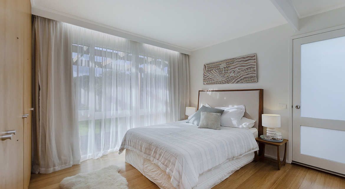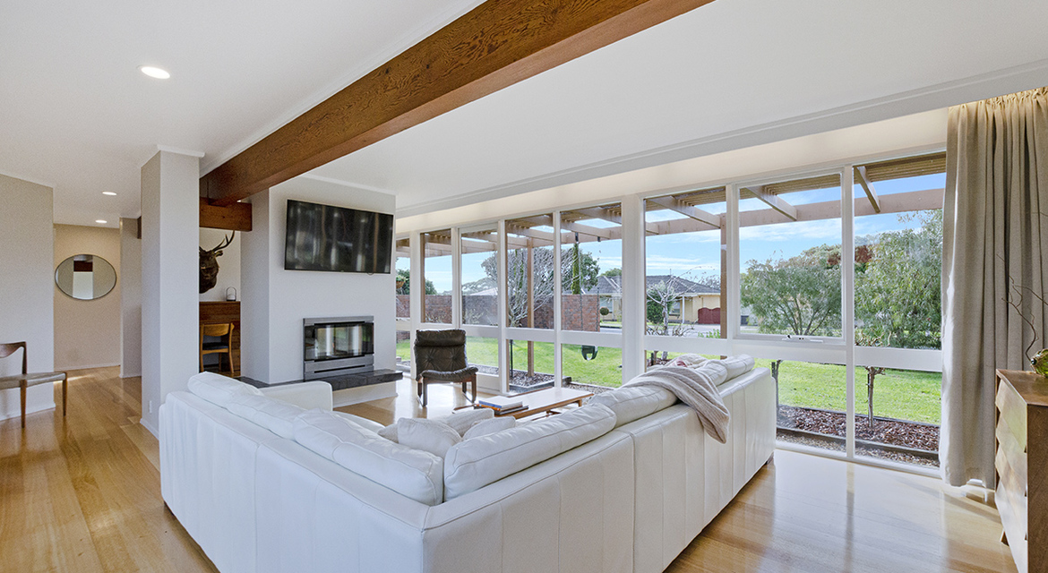 Then fate stepped in. A few months later, the home hit the market. Designed in 1974 by Melbourne architect Ian Burch (known for his work with Merchant Builders), it had all the hallmarks of classic MCM style: north-facing orientation, walls of glass, exposed timber beams, and a seamless connection between indoors and out. They didn’t hesitate—it became theirs.