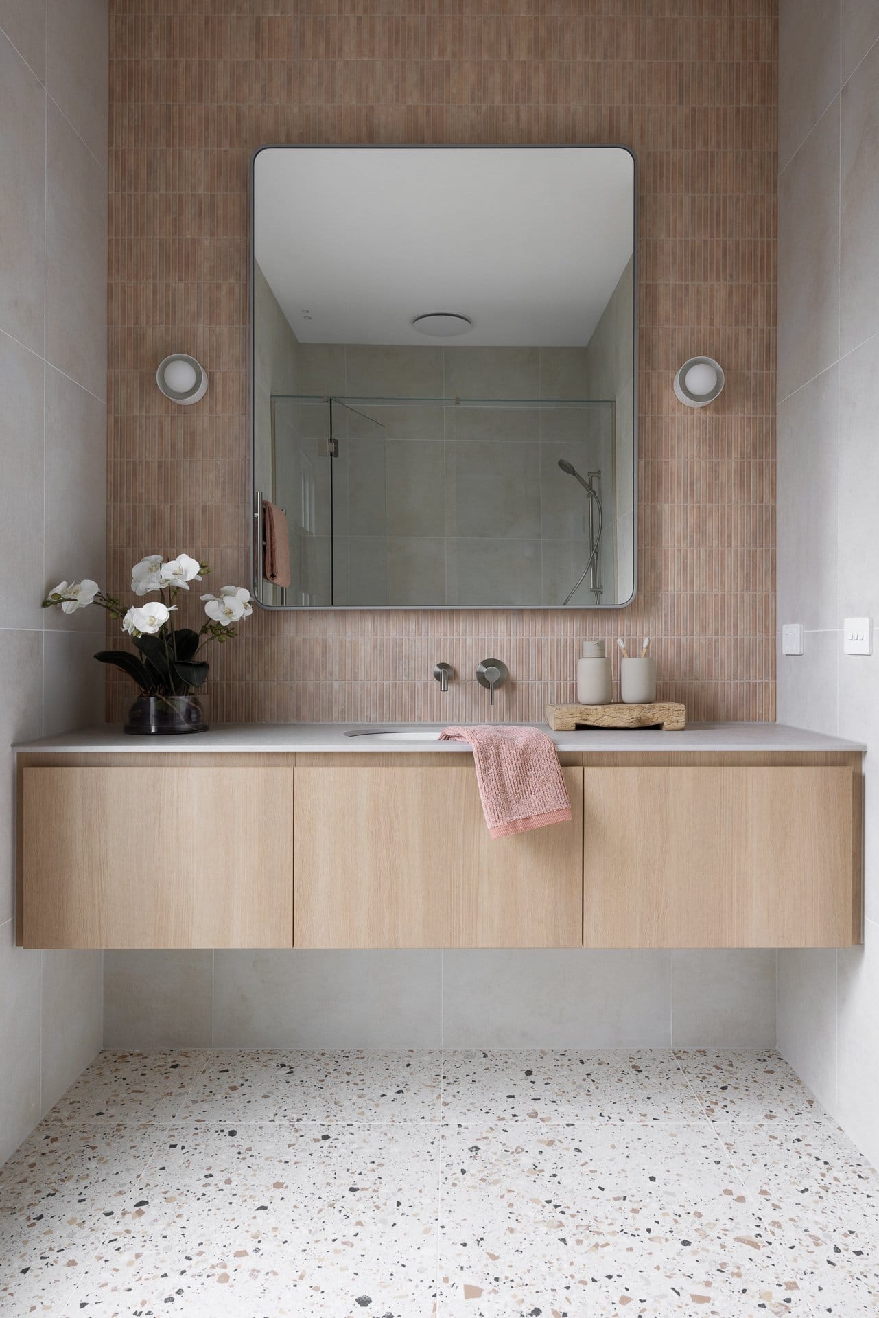 The key features that were non-negotiables were: 4 bedrooms, one of which is a flexible space depending on the owner’s situation, 2 bathrooms, secure undercover off-street parking, gas fireplace, feature natural stone, beautiful gardens, large laundry and kitchen that was not white! I have challenged myself with using colour as I wanted to create a home that had layers of texture and cohesive colour that hugged you when you came home and make you want to interact with the spaces.